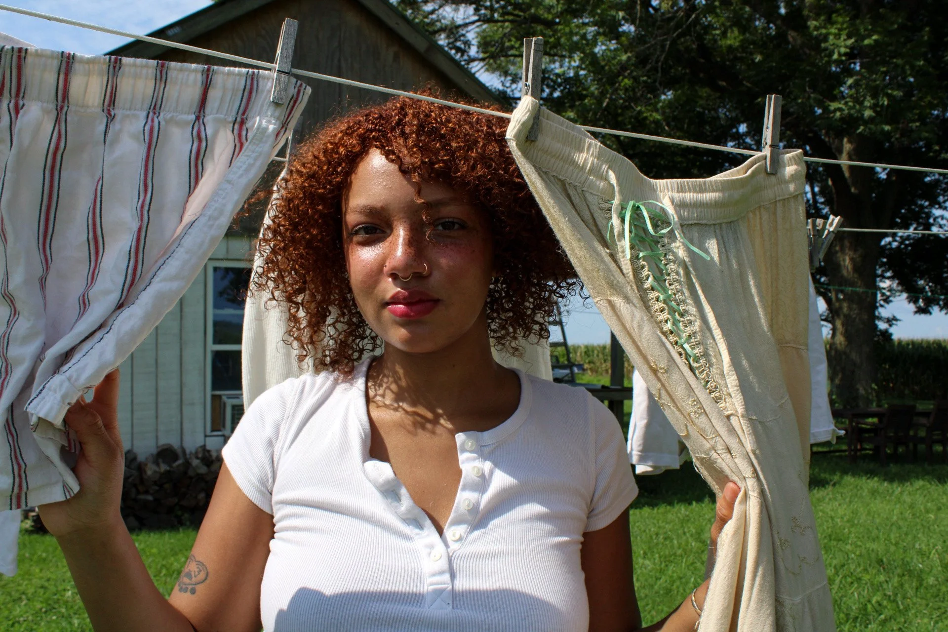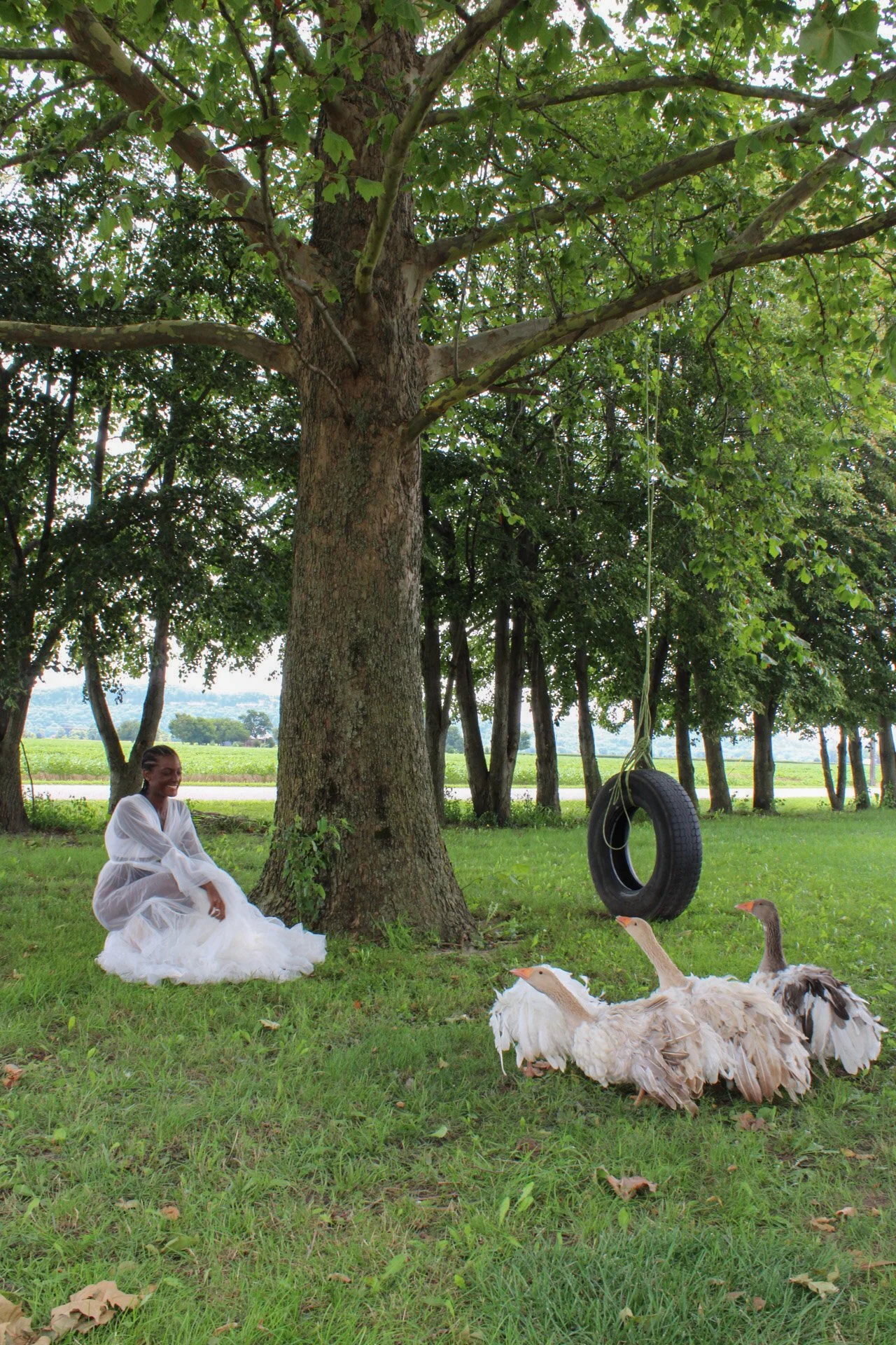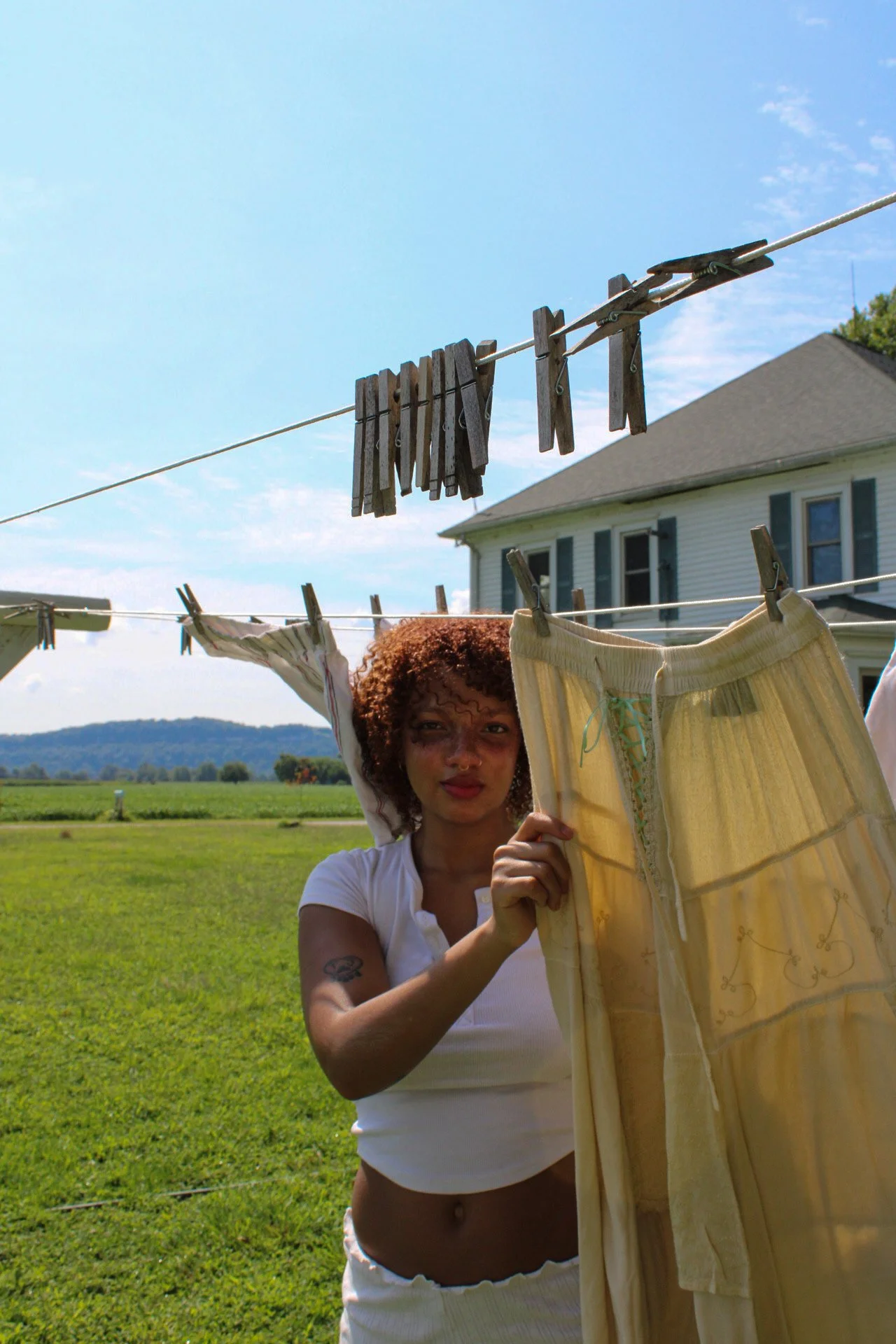 A world where femininity and rural life intertwine in a delicate balance, emphasizing beauty over burden, serenity over sweat. These images do not aim to depict the full reality of farm work, with its physical demands and long days, but instead offer a dreamy portrayal shaped by nostalgia, storytelling, and cultural fantasy. This series is not about truth, but about the version of truth that lives in our imaginations- the version shaped by memory, media, and longing. In romanticizing the life on a farm, I also question what we choose to see and what we leave out.
